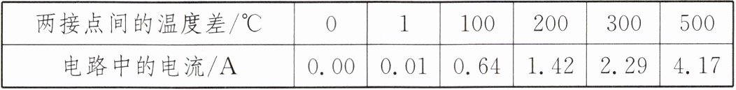 (4)小红继续探究了决定“热电流”大小的因素,通过实验测得了电流的大小与温度差关系的一组数据如下表: