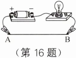 16. 如图所示,小明用A、B两个金属夹子将一根铅笔芯接入电路中,当B夹子左右移动时,小灯泡的亮度会发生变化,此时使铅笔芯接入电路的电阻发生变化的主要因素是