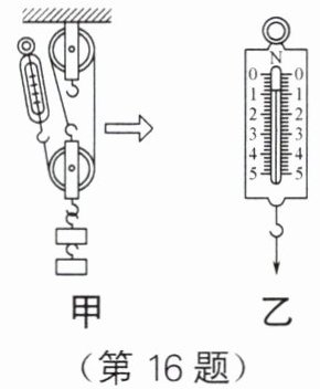 16. 某同学在“研究滑轮组的特点”的实验中,用如图甲所示的装置匀速提起重物,并做了如下实验记录: