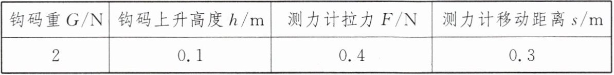 |钩码重$G/N$|钩码上升高度$h/m$|测力计拉力$F/N$|测力计移动距离$s/m$|