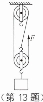 13. 用如图所示的滑轮组吊装$25$袋大米,每袋大米的质量是$20kg$,拉力$F最大为300N$,不计滑轮重、绳重及摩擦,则至少需要吊运的次数是($g取10N/kg$)(