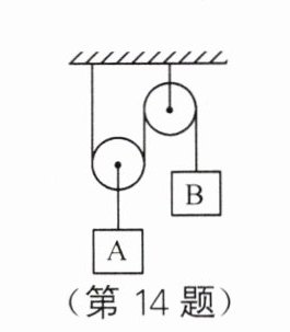 14. 如图所示的滑轮组,不计滑轮质量,分别挂上$A$、$B$两物体后恰能静止,则两物重力关系为(