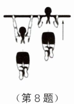 8. 小丽同学在中考体育考试中,选择了引体向上项目。如图所示是引体向上的示意图。小丽同学在 1 分钟内做了 8 个规范的引体向上,则她在整个做引体向上过程中的功率最接近于(