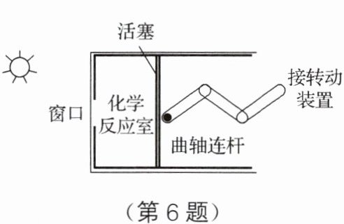 6. 光发动机可用于卫星的能源补充,原理如图所示,密闭气室中 $ N_2O_4 $ 在光照下会分解,使气室气压增大,推动活塞右移,无光条件下发生逆反应,控制光照即可实现活塞往复运动。活塞右移过程相当于汽油机的(