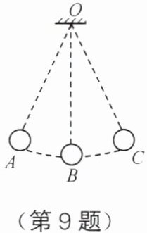 9. 如图所示,单摆中的小球在 $ ABC $ 间不停地往复运动,如果不考虑阻力的影响,以下说法错误的是(
