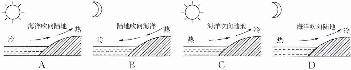 11. 学习了比热容的知识后,某物理课外兴趣小组绘制了如图所示的海陆风成因及空气流动情况示意图,其中正确的是(