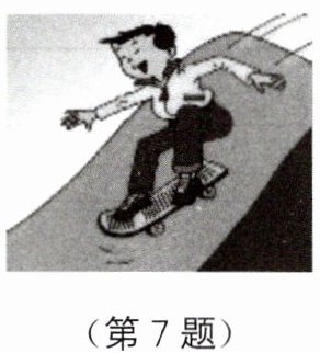 7. 如图所示,小明踩着滑板从斜面顶端加速下滑的过程中,他和滑板的(