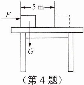 4. 如图所示,用$20N$的水平推力,经过$2s$,使重力为$100N的物体在水平桌面上移动5m$。在这个过程中,重力做功为