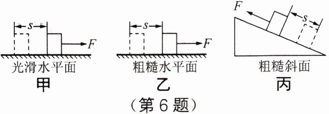 6. 如图所示,用大小相等的拉力$F沿不同的方向拉同一物体运动相同的路程s$,则下列判断正确的是(