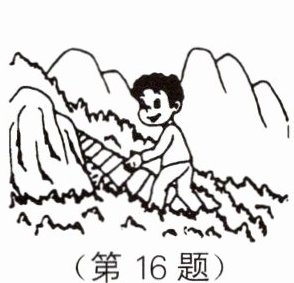 16. 初中生小明用$90s从坡底爬上了18m$高的山坡。他爬坡时做功的功率接近于(