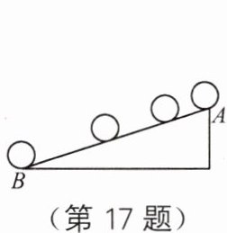 17. 在体育课上,小明用频闪照相机记录了质量为$450g$的足球沿斜坡向下运动的过程。频闪照相机每隔$0.2s$拍一张照片,照片记录了足球在不同时刻的位置,如图所示。由图可估算该足球从位置$A到位置B$的过程中,足球的重力做功的功率最接近于($g取10N/kg$)(