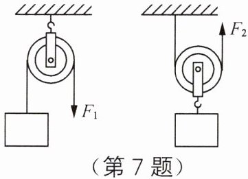 7. 两个滑轮完全相同,其重力均为20N。分别用如图所示的两种方式将重400N的物体以相同的速度匀速提升了10m,不计摩擦和绳重。下列判断正确的是(