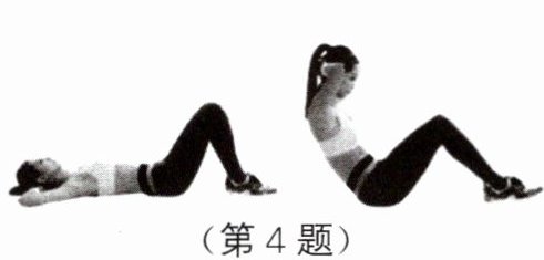 4. 如图所示为运动员在做仰卧起坐,其体重为750N,上半身的重量为体重的五分之三,仰卧起坐时上半身重心上升的高度均为0.3m,做一次仰卧起坐,其克服重力做功约为