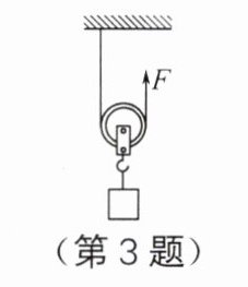 3. 如图所示,用一个大小为F的力拉动一个质量为$m_{1}$的物块,动滑轮的质量为$m_{2}$,拉动物块上升的速度为v,不计绳重与摩擦,则$F=$