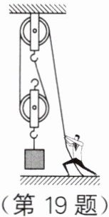 19. 用如图所示的滑轮组,在5s内将300N货物匀速向上提升1m,动滑轮重为40N,人的拉力为200N,求: