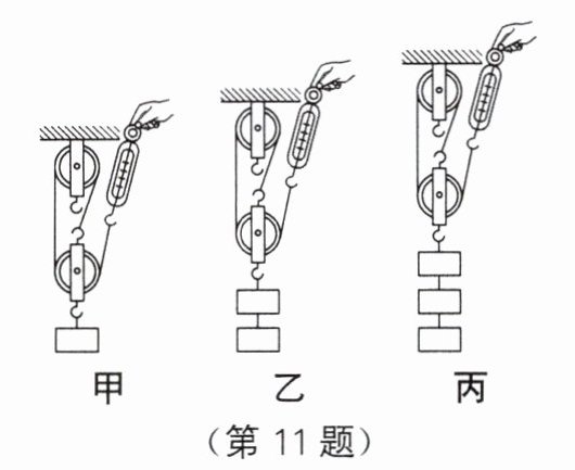 11. 在“探究滑轮组工作时的特点”活动中,小明用如图所示的滑轮组提升钩码,改变钩码的数量,在正确操作的情况下,测得的实验数据如下表。