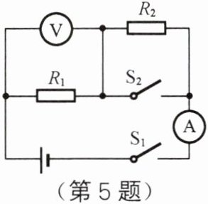 5. 如图所示,电源电压保持不变,闭合开关 $ S_{1} $、$ S_{2} $,电压表示数为 3 V,电流表示数为 0.3 A,断开 $ S_{2} $ 后,电压表示数为 2 V。下列判断正确的是(