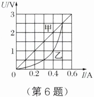 6. 如图所示是电阻甲和乙的 $ U - I $ 图像,小明对图像信息作出的判断正确的是(