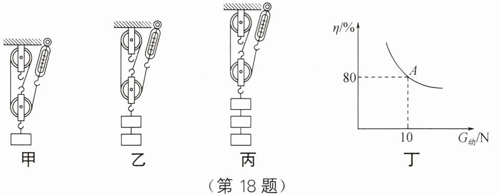 18. 在“测量滑轮组的机械效率”实验中,小明用同一滑轮组进行了三次实验如图甲、乙、丙所示,实验数据记录如下表: