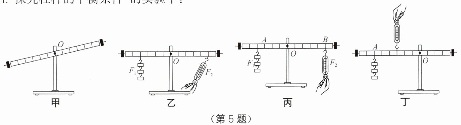 (5)小明同学提出,若支点不在杠杆的中点,杠杆的平衡条件是否仍然成立?于是小明利用图丁所示的装置进行探究,发现杠杆平衡条件不成立,其原因是