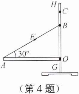 4. 如图所示为实践小组同学制作的斜拉索桥模型,其中立柱GH为桥塔,桥面OA为长30cm、重5N的质地均匀木条,可绕O点转动,A端用细线与立柱GH上的B点相连。则桥面OA的实质是