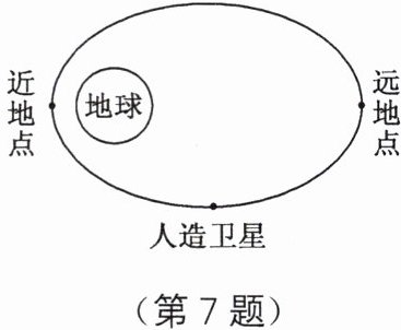 7. 环绕地球运动的人造卫星,其动能和势能在不断地相互转化。一般人造卫星的运动轨道是椭圆形,如图所示。从远地点向近地点运动的过程中,势能逐渐