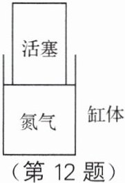 12. 氮气弹簧是一种以密闭高压氮气为工作介质的弹性组件,具有体积小、弹力大、工作平稳、使用寿命长等优点。它在生活和工业中具有广泛的应用,其工作结构简图如图所示。当活塞顶部受到压力向下运动时,下列说法正确的是(