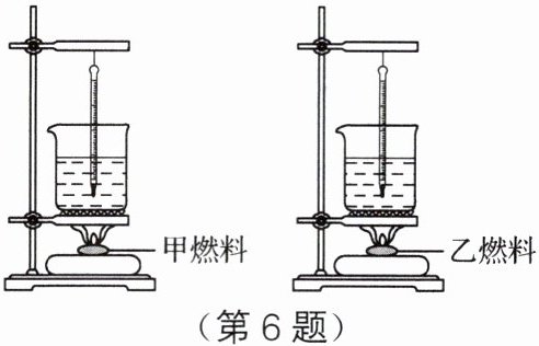 6. 如图所示,用甲、乙两种燃料分别对质量和初温相同的水进行加热,两图装置均相同。燃料的质量用$m$表示,燃料充分燃尽时水升高的温度用$\Delta t$表示(水未沸腾)(