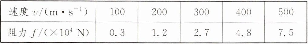 |阻力$f/(×10^{4}N)$|0.3|1.2|2.7|4.8|7.5|
