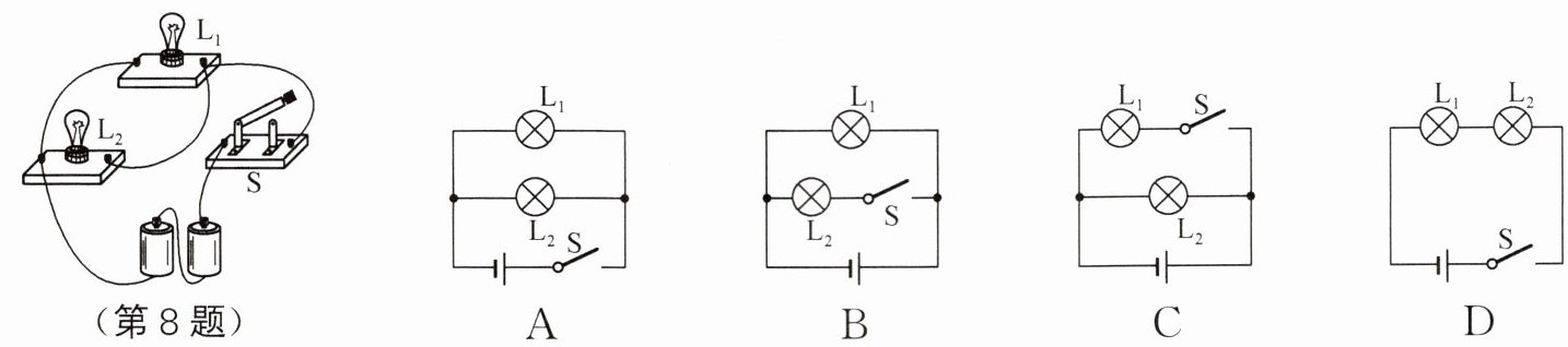 8. 下列四个电路图中与如图所示的实物图对应的是(