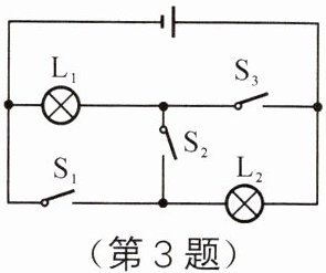 3. 如图所示的电路中,只闭合开关 $ S_2 $ 时,灯 $ L_1 $ 和 $ L_2 $ 是