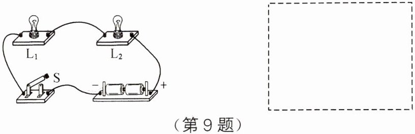 9. 根据下面的实物图,在右边的虚线框内画出电路图。