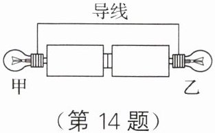 14. 小明采用如图所示的方法将甲、乙两个完好的灯泡连接在电源上,关于两灯泡的连接情况,下列说法正确的是(