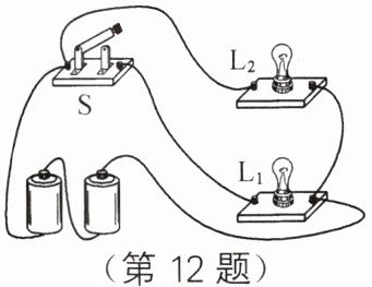 12. 如图所示,闭合开关 $ S $,电灯 $ L_1 $ 与 $ L_2 $ 的连接方式是
