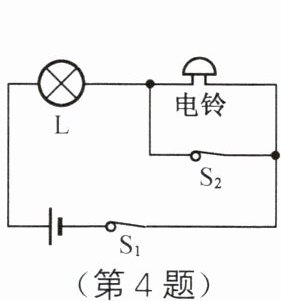 4. 小明在做实验时连接如图所示的电路,闭合开关$S_1$和$S_2$后,下列分析正确的是 (