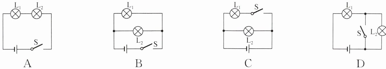 5. 小明设计了一个电路,开关断开两灯都不亮,开关闭合两灯均亮,拧下其中一只灯泡,另一只灯泡仍亮,则符合要求的电路是 (