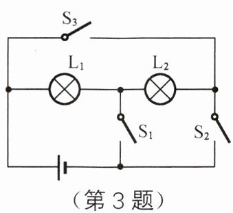 3. 如图所示,要使两灯串联,应闭合开关