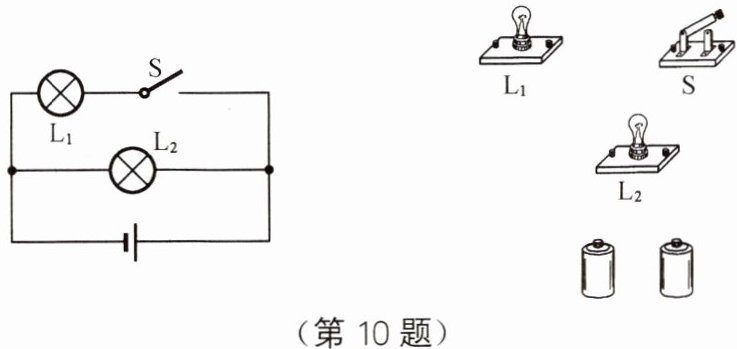 10. 根据电路图连接实物图,并在实物图上标出电路中的电流方向。