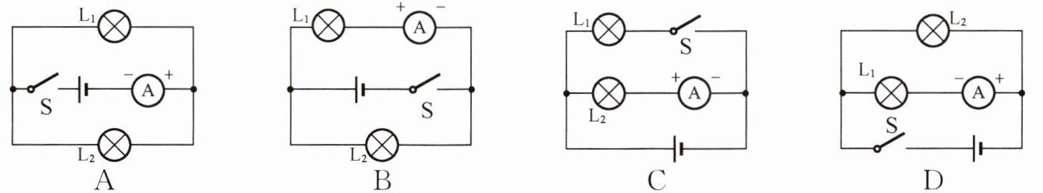 7. 如果想用电流表测量电路中通过灯泡${L}_{1}$的电流,下列电路图正确的是(
