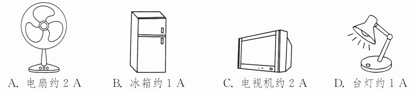 11. 下图所示为我们常见的家用电器,关于它们正常工作时的电流,下列说法合理的是(
