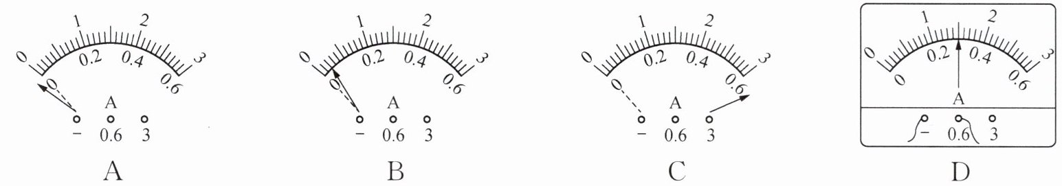 。如图$D$所示是一次正确测量的情况,该电流表的示数是0.3