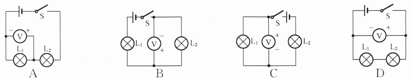 6. 如图所示,闭合开关后能测出小灯泡 $ L_1 $ 两端的电压的电路是(