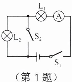 1. 如图所示,当开关 $ S_1 $ 闭合、$ S_2 $ 断开时,灯泡 $ L_1 $ 和灯泡 $ L_2 $ 的连接方式是