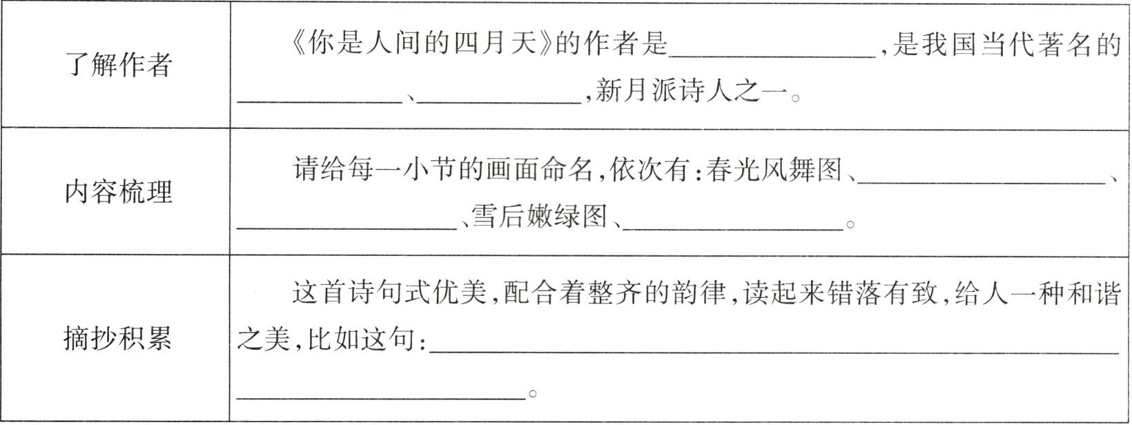 3. 小明设计了读书卡,请你阅读诗歌,填写下面的读书卡。
