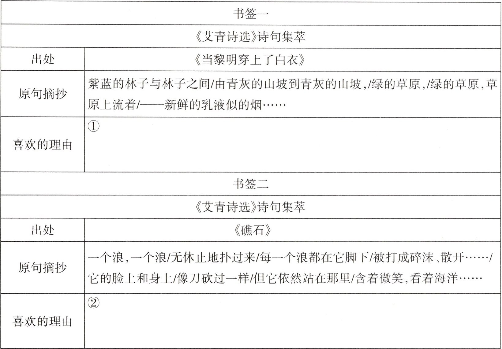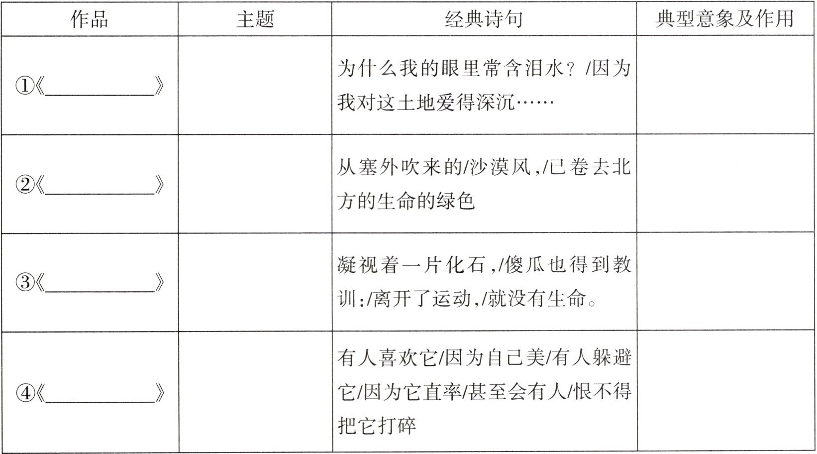 请根据提示,完成下面《艾青诗选》思维表格内容。