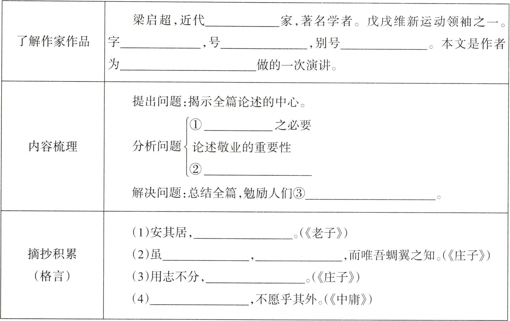 思想 卓如 任公 饮冰室主人 上海中华职业学校学生 ①有业 ②论述乐业的重要性 ③要敬业与乐业