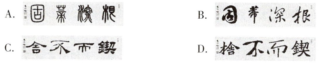 1. (1)在班级文化建设中,老师希望挑选一幅书法作品来激励同学们在追求知识的道路上要坚守恒心、秉持毅力。请帮老师挑选一幅楷书作品表达期望,下面作品合适的是( )