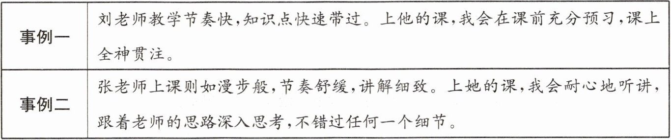 |事例二|张老师上课则如漫步般,节奏舒缓,讲解细致。上她的课,我会耐心地听讲,跟着老师的思路深入思考,不错过任何一个细节。|