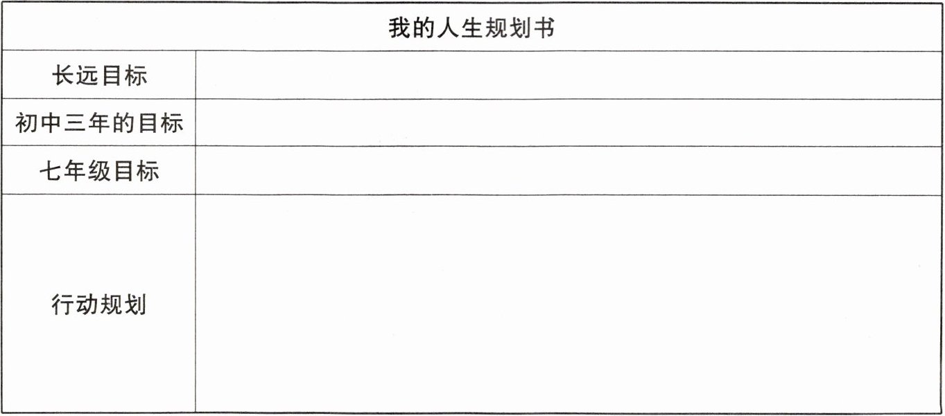 (2)请你完成自己的人生规划书,并分享实现目标的好方法、好习惯。(要求:目标合理,写出具体的行动规划)