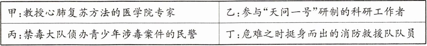 | 甲:教授心肺复苏方法的医学院专家 | 乙:参与“天问一号”研制的科研工作者 |
